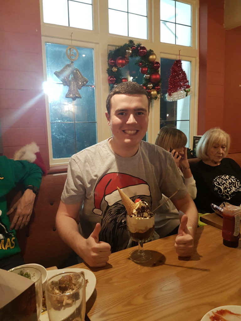 Friday 7th December 2018 I went christmas Shopping at Lakeside with my mum and Nanny Pat we drove there in the car on the M25 The Shops I went in was Hotel Chocolat, Thorntons, Entertainer, Wilkinsons, Debenhams and the West Ham shop . I brought lots of presents for my family, my dog, college and Lambourne End. We had lunch in Starbucks I had a Sausage Roll, Cinnamon Bun and Orange Juice. In the evening I went to the Barking Road Runners xmas jumper meal at Havester in Chadwell Heath and I had simply grilled chicken, Chips and Beans and for dessert I had a rocky horror. It was good to see all the runners in their Christmas Jumpers and I enjoyed the evening and my meal and desert was lovley. Below are some pictures from my day and also if you like reading my blog please comment.