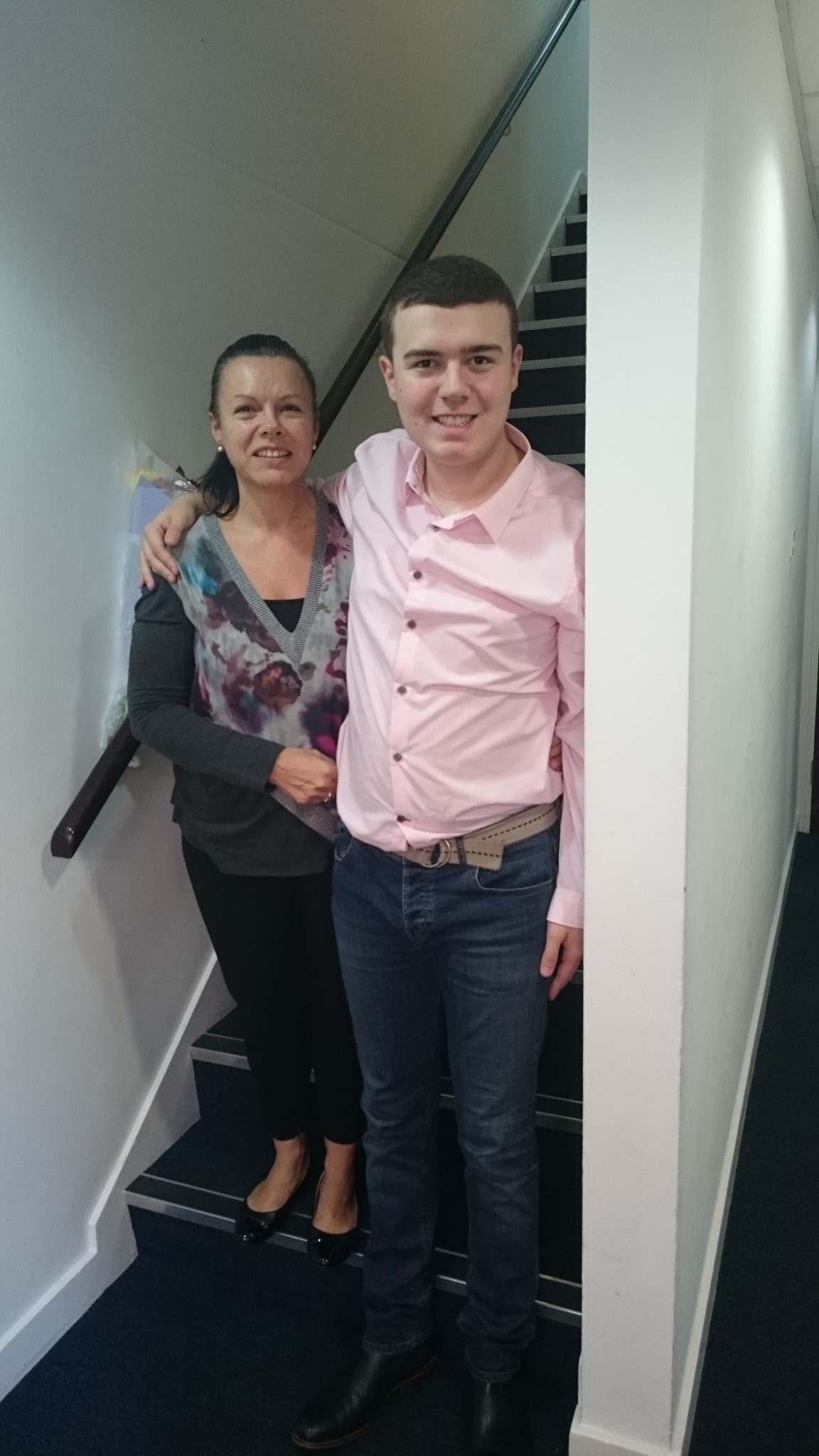 This is me and Denise on the stairs behind the foyer:
