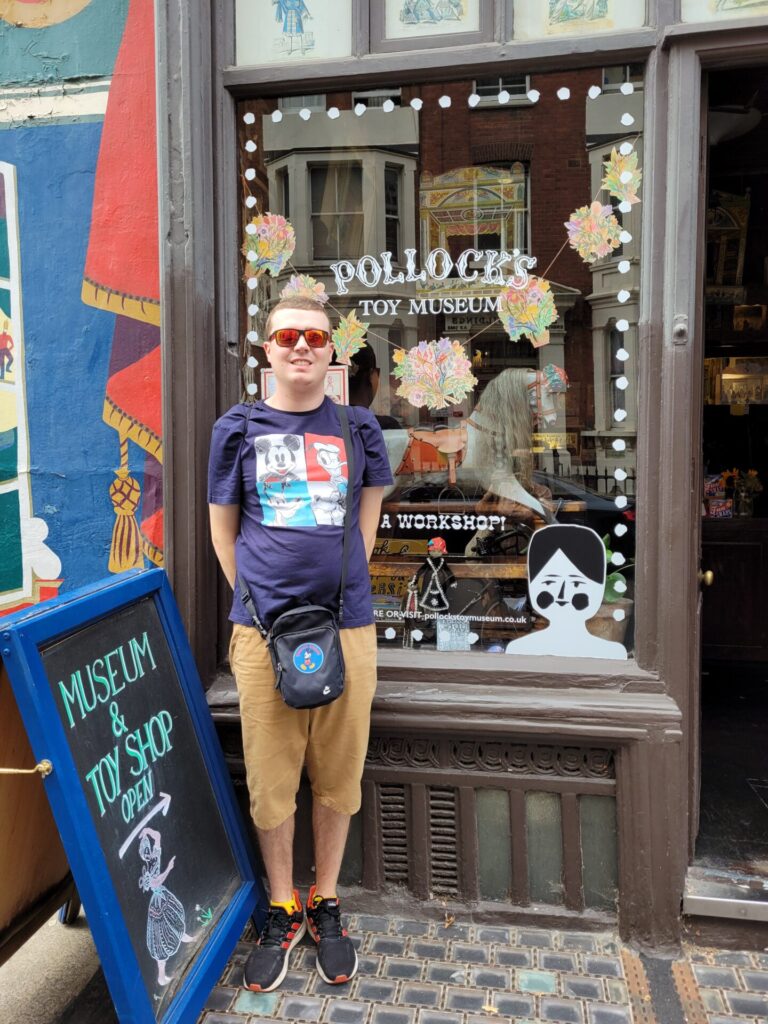 Friday 22nd July 2022 I went to the Pollocks Toy Museum with my auntie Denise. We got there on the Elizabeth and Northern lines from Seven Kings to Goodge Street. The collection is housed in two atmospheric 18th and 19th century buildings in Fitzrovia, London. The collection is an eclectic mix of curios, each room filled with unique cases displaying toys from the past. Tin toys, teddy bears, dolls houses, puppets, optical toys and games from around the world adorn the winding staircases and creaking rooms. My favourite part was the Children’s TV Character memorabilia and it is one of my favourite museums. This was my second time and it wasn’t busy as we had it to ourselves today. Afterwards we went to Nando’s Goodge Street where I had a butterfly chicken, chips and garlic bread for dessert I had a choc-a-lot cake which was delicious. Below are some pictures from my day and also if you like reading my blog please comment.
