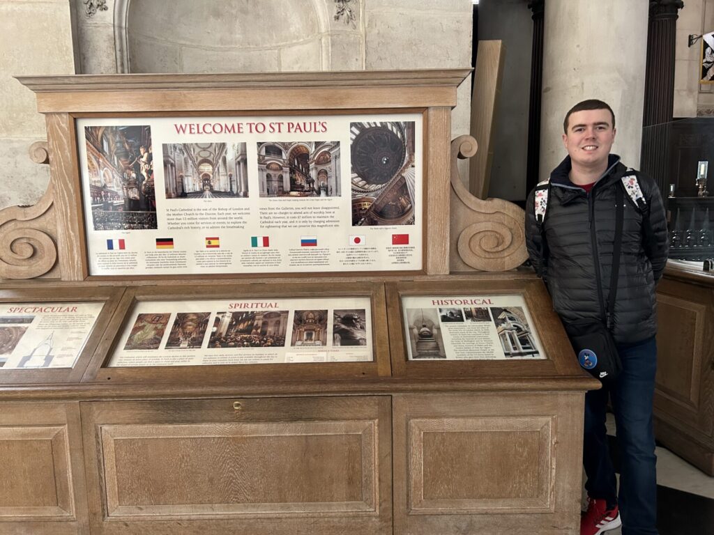 Happy New Year Everyone. Friday 6th January 2023 I went to St Paul’s to see Peter Marlow’s English Cathedral Exhibition with my mum and dad we travelled straight on the central line from Bethnal Green to St Paul’s. Peter was inspired to continue this pilgrimage and capture all 42 cathedrals of the Church of England using only natural light. This formed an ethereal collection of images, comparing and contrasting the architectural nuances of the Anglican Cathedrals. Then we climbed 376 stairs to the stone gallery where I saw amazing views over London. This was my third visit. Afterwards we went to Pizza Express my favourite restaurant across the road where my sister Sophie met us for lunch. I had dough balls, Pizza and chocolate cake for dessert. Below are some pictures from my day also if you like reading please comment.