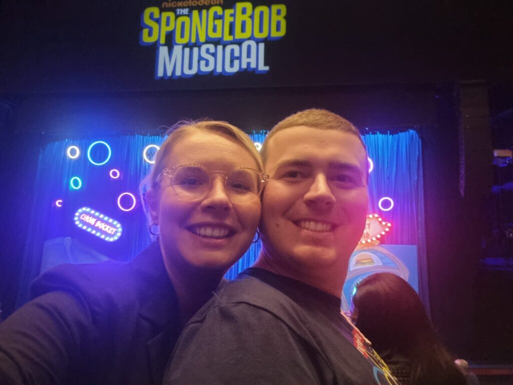 This week I decided to do my blog on Thursday 3rd August 2023 I went to see SpongeBob the musical with my sister Sophie. We got there on the Central and Jubilee lines from Barkingside via Canary Wharf on to Waterloo. We had dinner before the show at Pizza Express my favourite restaurant nearby where I had pizza dough ball and chocolate cake for dessert. The Spongbob Musical Show was at the Southbank Centre. It was a great show, all the performers, music and stages performers were superb. I really enjoyed watching it as it was amazing and I loved it. I was very delighted when SpongeBob came down from the stage in to the stalls near us during the show playing a bubble game. My favourite parts of the show when SpongeBob was in bed, his pineapple house and the theme song who lives in a pineapple under the sea. My favourite character was SpongeBob and it was one of my favourite shows. Below are some pictures from my day also if you like reading please comment.
