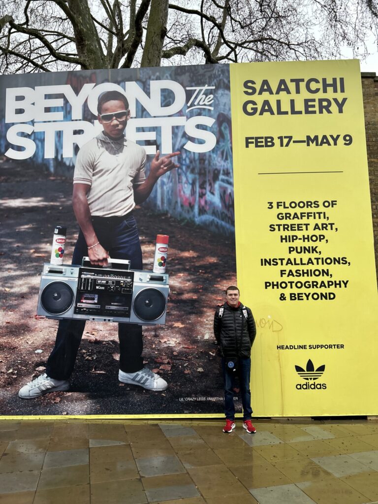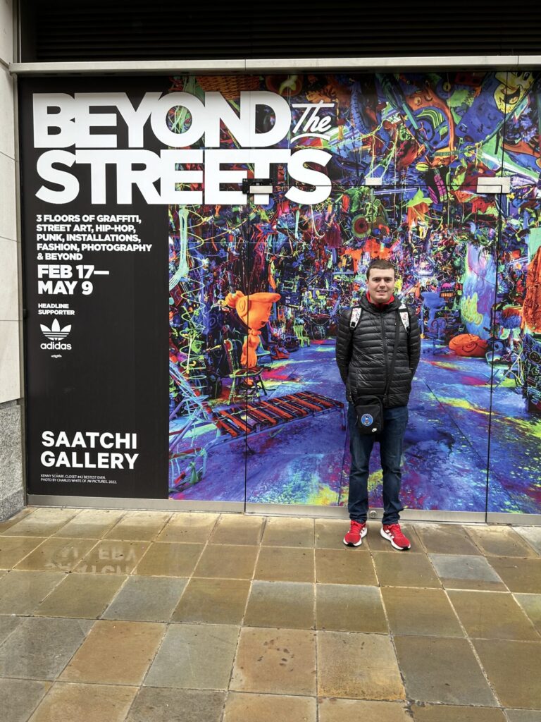 Friday 30th March 2023 I went to the Saatchi Gallery with my auntie Denise. We got there on the Elizabeth & District lines from Ilford to Sloane Square. From defiant train writers to powerful large-scale muralists, over 100 international artists are featured in Beyond the Streets London. The exhibition, supported by adidas Originals, is the most comprehensive graffiti & street art exhibition to open in the UK, and takes over all three floors of London’s iconic Saatchi Gallery. My favourite part was the rooms with Characters. Afterwards we went to Pizza Express in Kings Road my favourite restaurant for lunch where I had dough balls, pizza and chocolate cake for dessert. Below are some pictures and a video from my day also if you like reading please comment.