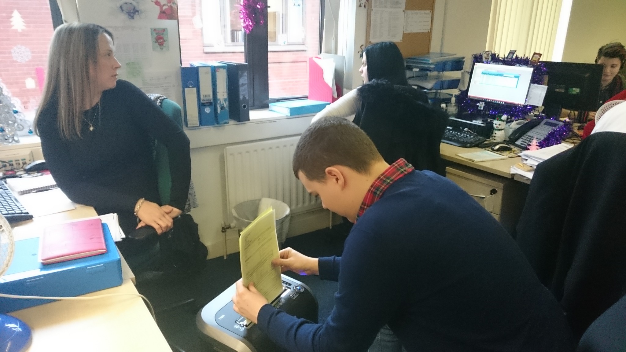Friday 11Dec15 I went to work again with my lovely aunt Denise for 4 hours from 10am to 2pm. Denise works for an organisation called 15 Billion who provide careers advice and information to youngsters in Newham aged 13-19 years of age. I turned up at their offices in Stratford and met again all the staff who were all very friendly and nice to me. During the day I did some laminating,  cutting and shreading which I enjoyed. At lunchtime Denise and I met my Nan and we had lunch at Morrisons.